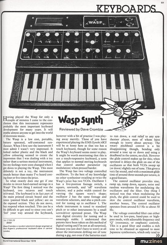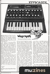 Having played the Wasp for only a couple of minutes I came to the conclusion that this instrument represents probably the most important keyboard development for many years. It will enable almost anyone to get into the world of electronic music.