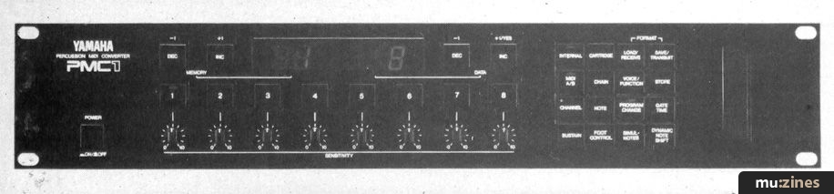 As with all percussion MIDI converters PMC1 converts control voltages put out by the pads into MIDI signal, which in turn are sent on to the tone generators in the drum machine or synthesizer. Of course, it's not just enough to take the signals from the pad to the control box. Ideally it should do something exciting with them before it sends them off in the direction of the drum machine or synthesizer. The PMC1 is fully programmable and like all the modern generation of Yamaha electronic equipment, is sophisticated yet easy to operate.