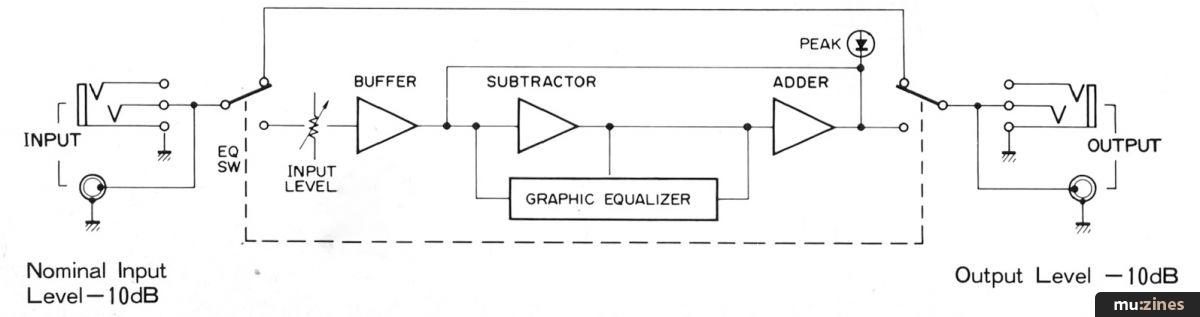 The input level slider is physically identical to the EQ sliders, but is sensibly set slightly apart from them to avoid confusion; another testimony to Yamaha's practical approach is that a choice of both jack and phono connectors is available on the rear panel. The phono connectors are a sensible alternative if the equaliser is to be used in a permanent installation.