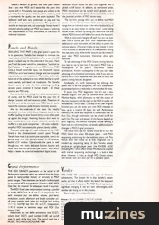 If you're into MIDI diagnostics (no, it's not a new lifestyle religion) then you can summon forth the MIDI Monitor display, which allows you to read the output of the two processors and the input to the MIDI In socket (in hexadecimal, I should add). Courtesy of the User Program function, you an also enter your own MIDI messages in hex, up to a total of 40 bytes, for each Performance memory. The same data sequence is transmitted over all four Outs, though transmission can be turned on/off for each Out. The uses (and abuses) of this feature depend on your ingenuity, but obvious examples include sending a Start code to a drum machine, and sending additional patch changes to MIDI'd signal processors.