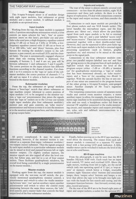 The Teac 80-8 tape machine, Tascam Model 5 mixer, and dbx DX-8 noise-reduction unit. |