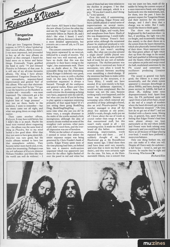 Tangerine Dream in concert, vinyl from Soft Machine and Elvis Costello. |
